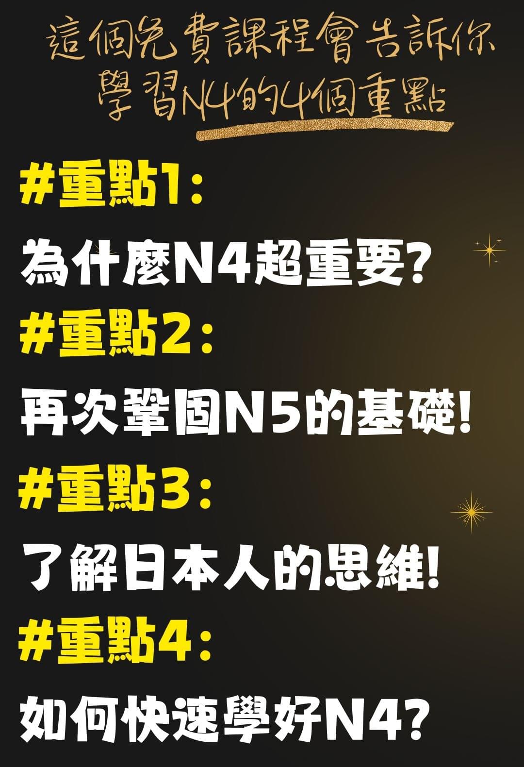 ⚠️注意:這是抓尼先生「日語N4進階課程」免費講座的報名頁面...